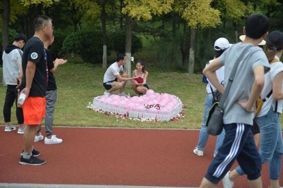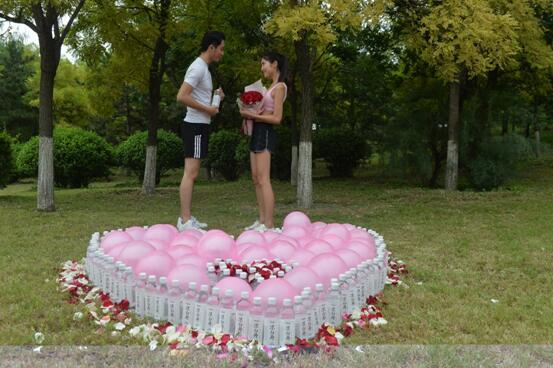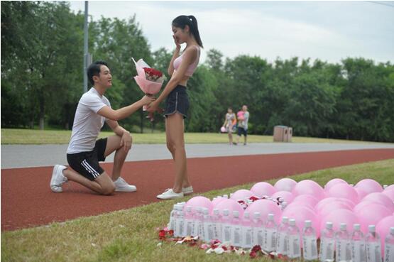 据网友爆料,傍晚时分便见一个运动着装、又高又帅的男生在奥森公园跑道,用今麦郎凉白开、各色玫瑰花、粉色气球摆成心形,向一位肤白貌美运动型少女表白,场面不大但很温馨浪漫。