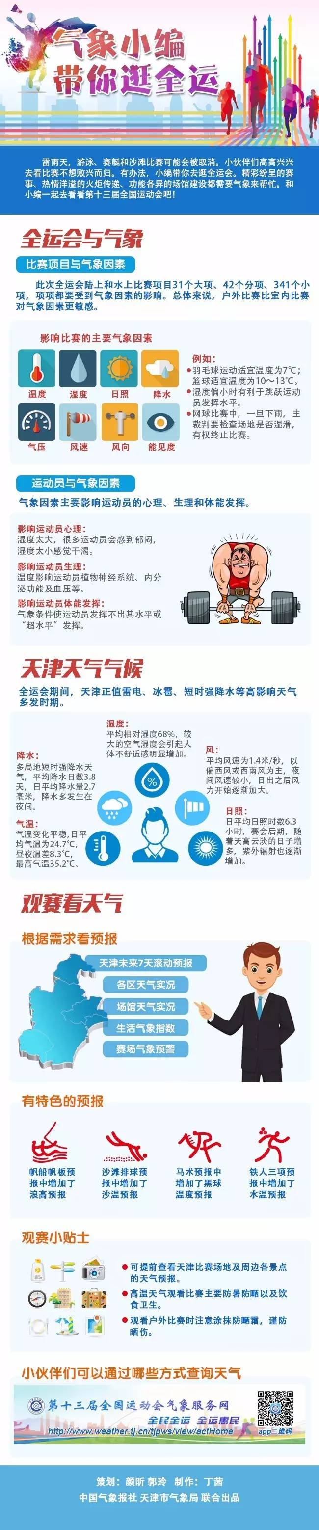 “演员、运动员在露天活动持续最久的约30分钟,阵性降水不会完全淋湿他们;23时降水开始加强,不会影响开幕式全程演出。这给所有人吃了一颗定心丸。”天津市气象局副局长、全运会综合保障部气象保障组总指挥关福来说。