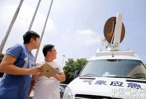 信息保障人员正在调试气象应急指挥车。吴迪 摄