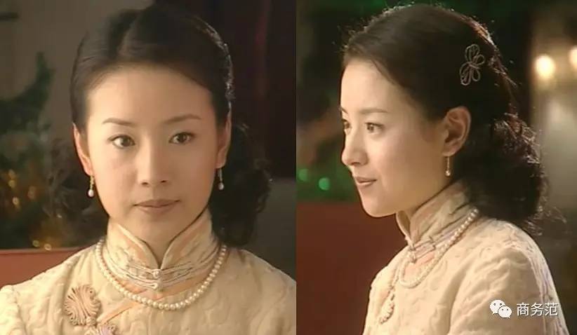 作为留过洋的有钱人家的小姐,秀珠在服饰方面也比较西化,洋中带雅,与刘亦菲明亮气质很吻合。不管是发型、首饰,还是服装,都和国际接轨。