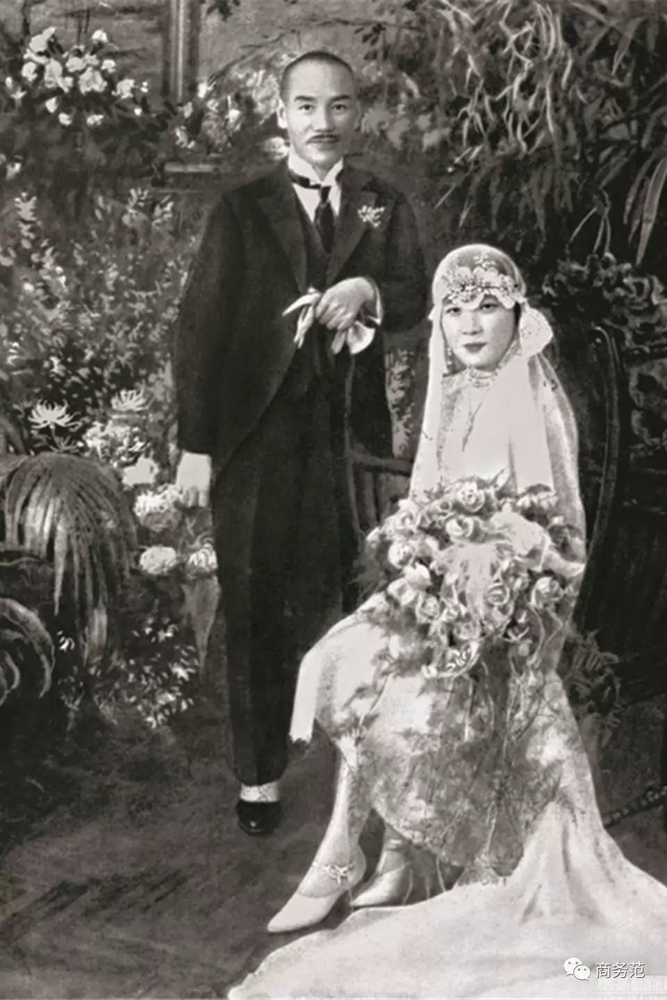 民国时的婚纱一大特色是头纱非常长,款式也比较繁复,婚纱多为高领,在蕾丝的质地下衬托出浪漫华美。范主发现,冷清秋的婚纱,与当年宋美龄拍婚纱照时的婚纱似度非常高。