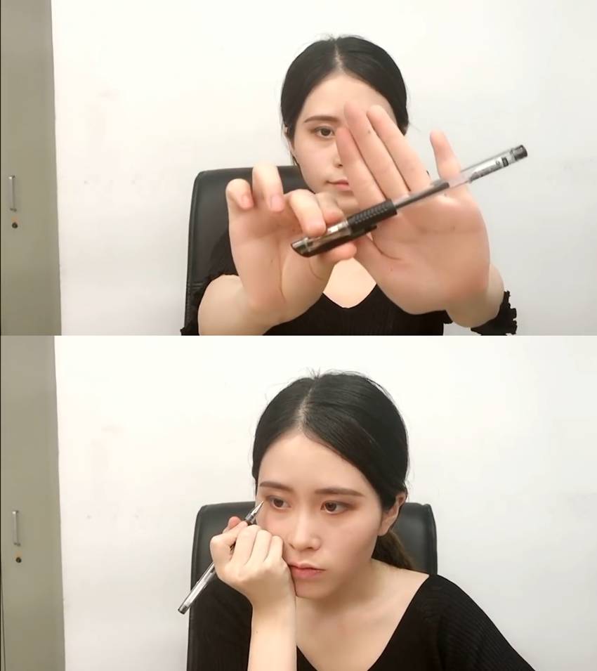 从笔筒里面抽出一支晨光黑色水性笔来当眼线笔,美妆初级妹纸就算是再穷也不要尝试这个手法,这是真的怕瞎。