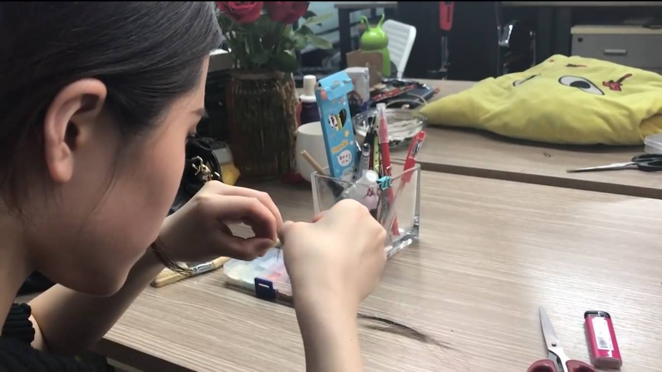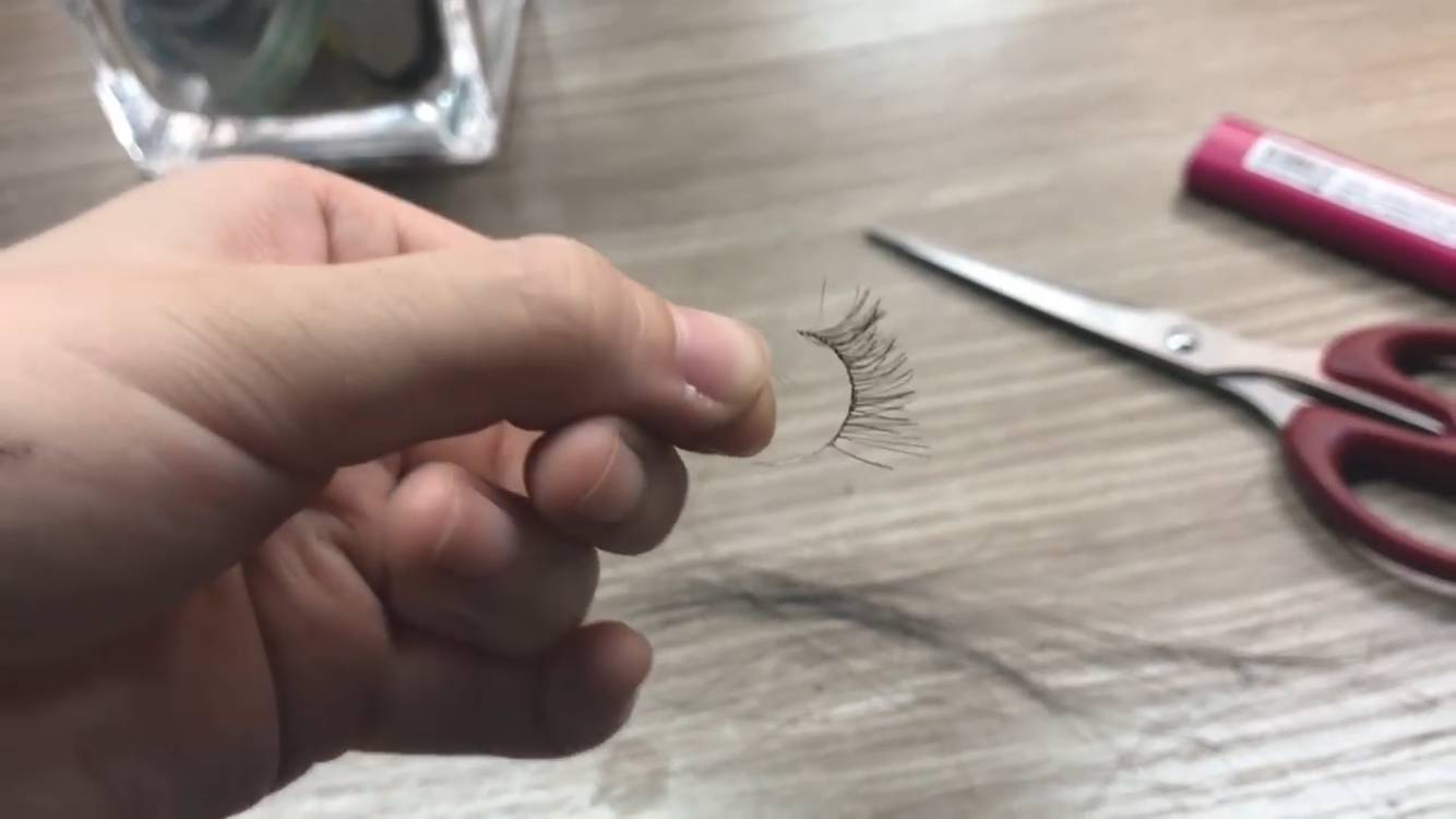 剪了男同事的一缕刘海做假睫毛,这个过程有点复杂,是这样的: