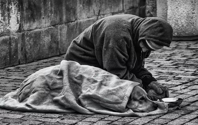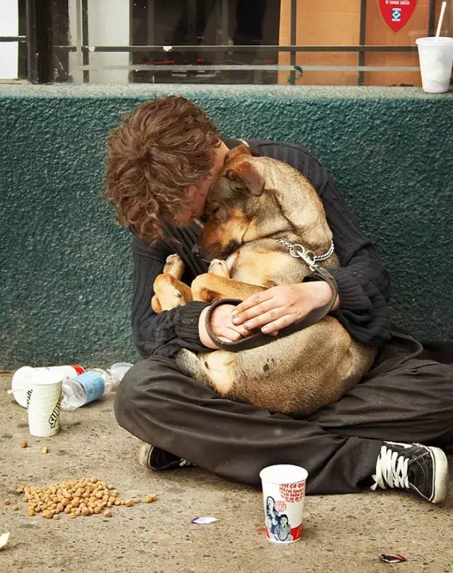15、这些流浪汉虽然自己饥寒交迫但是对于爱犬永远都是呵护有加