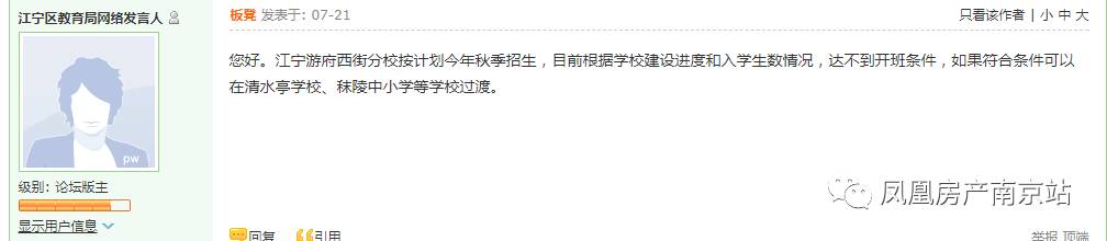 此前,也有网友在南京网络问政上就工程进度提出疑问,官方给出的回复是:根据建设进度和入学生数情况,达不到开班条件,如果符合条件可以在清水亭学校、秣陵中小学等学校过渡。