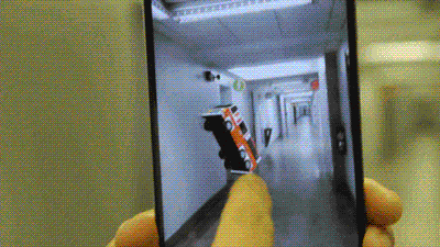ARCore 版 “任意门” 而在将手机拿开让虚拟物体从画面中消失,或者将相机盖住后,当手机和镜头重新回到原先的位置时,之前的虚拟物体依然在之前设置的地方 “等着你”,这对 AR 体验的连续性有着很大的提升。 ARCore 还有更多的可能