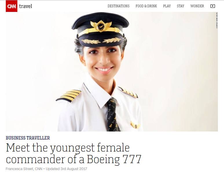 就在前不久,她成为全世界最年轻的波音777女机长,连CNN都被惊动了,用大幅的版面来报道她。