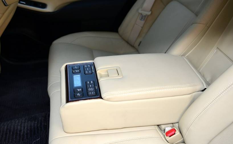试驾车是2.0T顶配版本,所以后排扶手箱上可以调节一些车内功能。但是车聚君又想吐槽了,这扶手箱上的按键也太掉档次了吧,看上去就像十几年前的大哥大一样,关键这不是一辆十几年的中古车啊!这样好吗,皇冠?