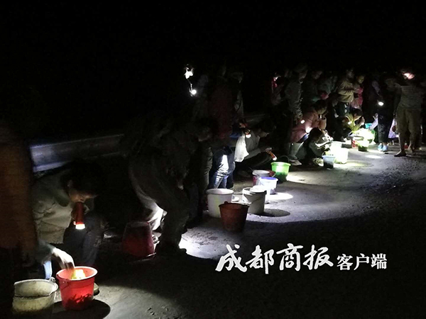 有人抓,就有人收购,而且是连夜收购。晚上10点过,捕蝉者带着收获陆续下山,在公路边就形成了数十米的收购市场,一些县城的居民也前来购买。村民段富顺上山捕蝉一个多小时,带着一小桶幼蝉下山,此时一对夫妇上前购买,以50元的价格成交,“估计有六七两,价格还是可以。”