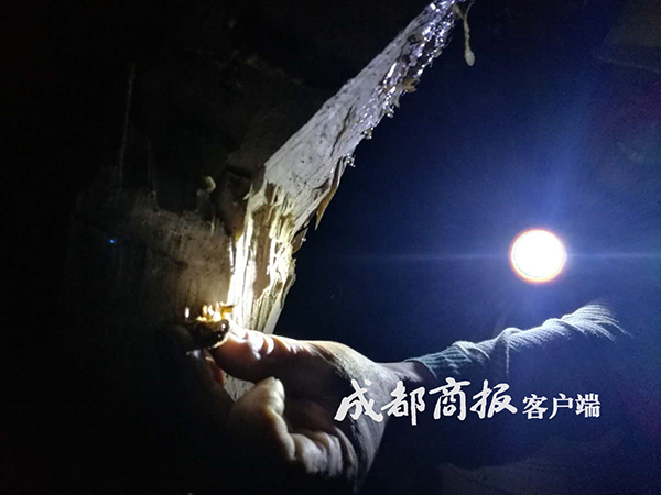 在捕蝉者的带领下,成都商报记者也跟随上山,近距离观察他们捉蝉的过程。在山林中,捕蝉者一手打着手电筒在山林间穿梭,仔细地搜寻着每一根树干,“幼蝉刚刚出土后,很多都爬到了树干的低处,这样直接用手就可以捉住。”