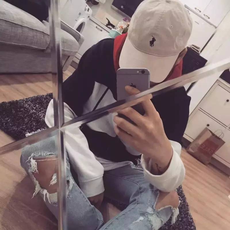 N:穿了最普通的白tee,还有黑的破洞长裤,感觉干干净净会比较好吧。