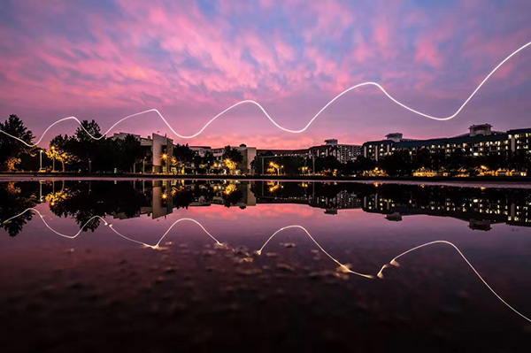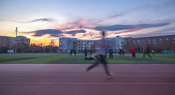 在操场这般视野开阔的空间跑步或散步,最大的福利当属能第一时间捕获美景:双道彩虹、火烧云等等,跑道上的人儿总是近水楼台最先看到,掏出手机“咔嚓”之后,便立即在朋友圈里激起“摄影大赛”的千层浪。奇特的天象往往会把大家从食堂、宿舍、甚至去上课的路上吸引到紫荆操场上,驻足仰望,欣赏美景。