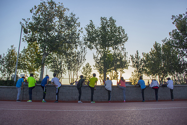 跑步不仅只是日常锻炼,大型的长跑活动更成为了校园内的一场场盛宴,而紫操常常作为长跑活动的起点和终点。在今年的校园马拉松上,同学们就在紫操上进行集体热身。伴随着动感的音乐和教练的激情呐喊,大家仿佛回到高中的广播体操时代,燃烧着着实可以和广场舞相媲美的热情与活力。