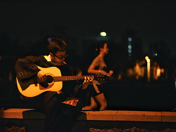 告别了北方寒冷的冬季后,紫操在春季一点点变得活络起来。从傍晚到入夜,文艺的男孩女孩们把石阶当座椅,倚靠着弹弹吉他,吹吹长笛,或者是小型乐队的弹唱组合,有趣时还可能偶遇一两次练快板的小哥。饭后散步的同学,就在一圈一圈走过的途中默数着这是本场Live Show的第几个曲目。或是找个邻近的石阶坐下,就着音乐声,和伙伴们聊聊天。