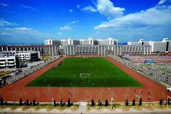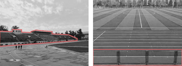其一,操场内围的场地不是按常见的足球场规格,而是采用了橄榄球场地的标准,外附跑道长475米呈长方形,没有常见的半圆形弯道部分,跑道围出的绿地也就更方整宽敞;