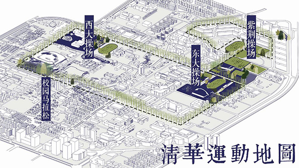 在号称着“无体育,不清华”的这个园子里,对身体健康的追求和每学年3千米测试的达标要求,使得跑道成为了同学们的刚需。从清晨六点的晨跑,到晚课下课后的夜跑,或迎着朝霞与初升的阳光,或映着星光与宿舍区的灯火。跑道上的人既成为使用操场空间的主角,也成为了校园环境里最有活力的背景。跑完步,借用操场东南侧高高的水泥石阶压压腿,拉伸放松一下,回宿舍的途中再顺路去C楼超市买上一盒牛奶,就又是完美的一天。
