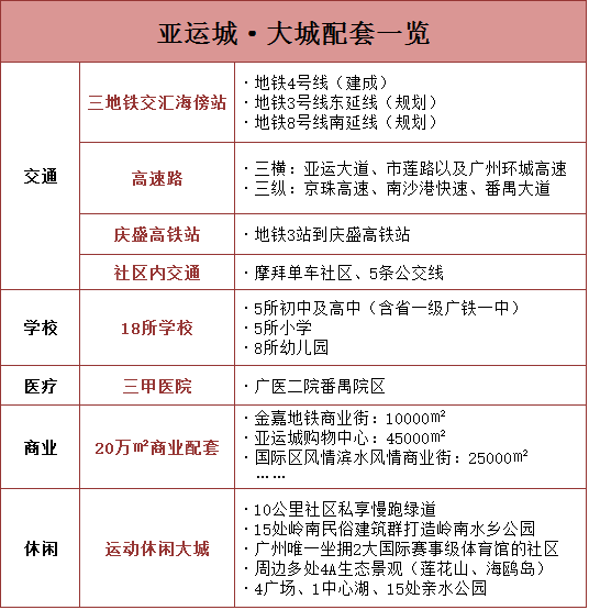 最后,附上亚运城配套表,别人家的大社区,不要太羡慕~