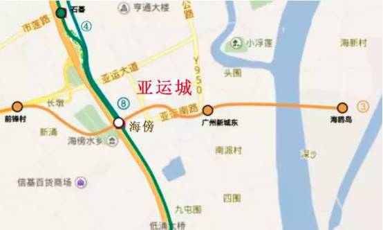 亚运城规划将有三条地铁线,在运营的海傍站将是4号线及规划中的3号线东延线、8号线南延线的交汇站。值得一提的是,亚运城新组团天成距离海傍站仅700米。