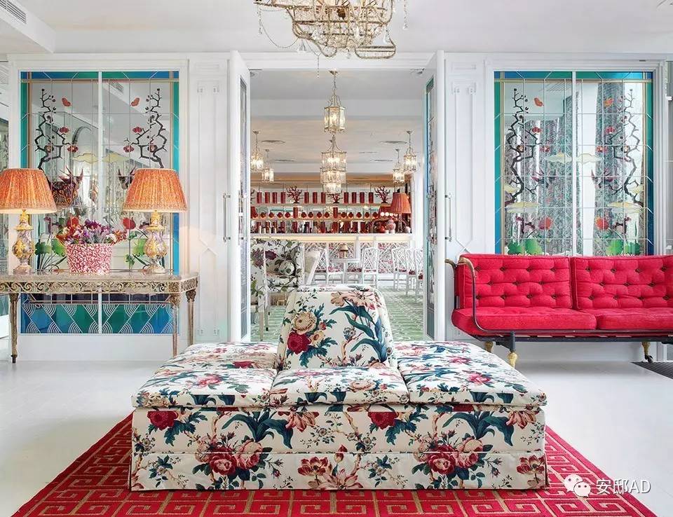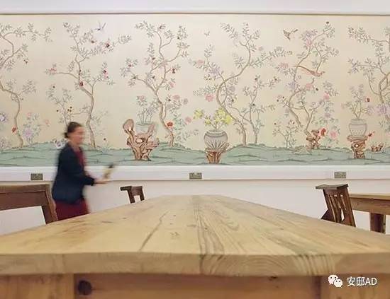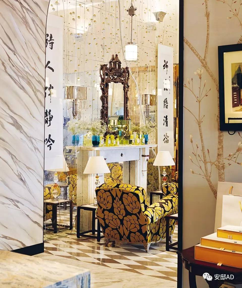 置身置地广场店内,中国风韵扑面而来,你很容易看到手绘和刺绣的墙纸、中国古画、古董灯具。