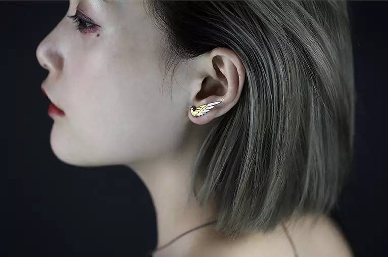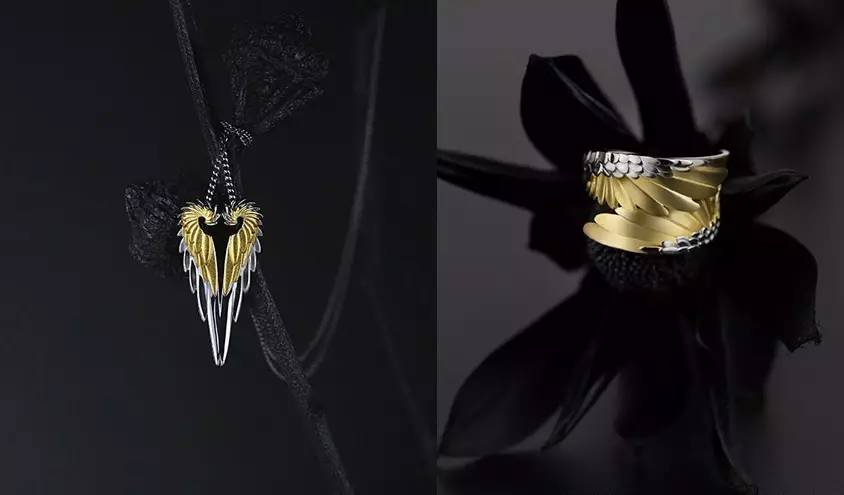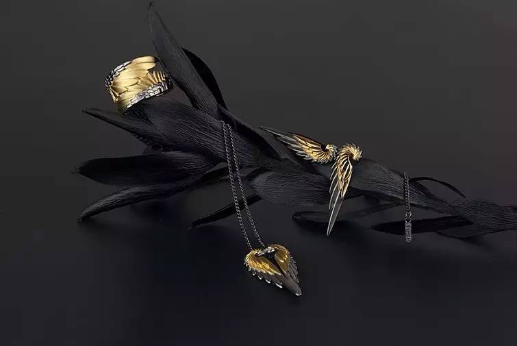 整个系列包括了项链、戒指、以及耳钉。配文也很走心“要摆脱现实的重力,并不只是挥舞翅膀那么简单”▼