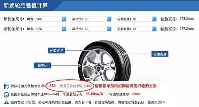 通过上面介绍的轮胎基本数值和轮毂J值,在您准备更换轮胎时,即可先自行查询下新旧轮胎的尺寸匹配度,一般轮胎直径偏差应该控制在正负3%内。