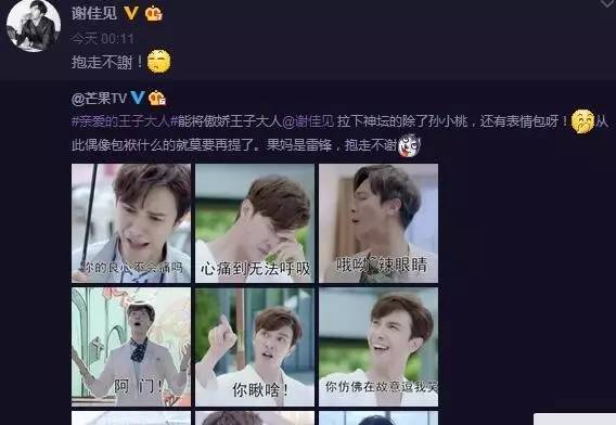 继赵又廷的整容般的演技之后,现在又有谢佳见的表情包式演技,才播出五集,就要网友给他制作了一套表情包,随后他自己还转发,看来本人和剧中中二爱面子的王子大人还是很不一样的。