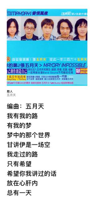 “我们曾走过无数地方 和无尽岁月 搭着肩环游 无法遗忘 的光辉世界 那个唱片行 何时已不见 是谁说过摇滚万岁 任意门里我们偶尔也疲倦 ” -----我是回到从前的任(fen)意(ge)门(xian)------阿信小时候曾去参加合唱团的选拔,但只唱了两个音,老师就将他刷掉了。阿信说,他从那个时候就知道:“我唱得不好听。”(心疼小阿信)