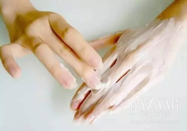 涂护手霜可不是挤一坨到手上随便涂涂这么简单哟!要想让护手霜彻底有效的吸收,正确的涂抹手法应该是:将护手霜挤在掌心,双手相互揉搓到掌心发热,然后依次涂抹在手背、掌心、十指上,连指甲边缘都要仔细照顾到不能遗漏。
