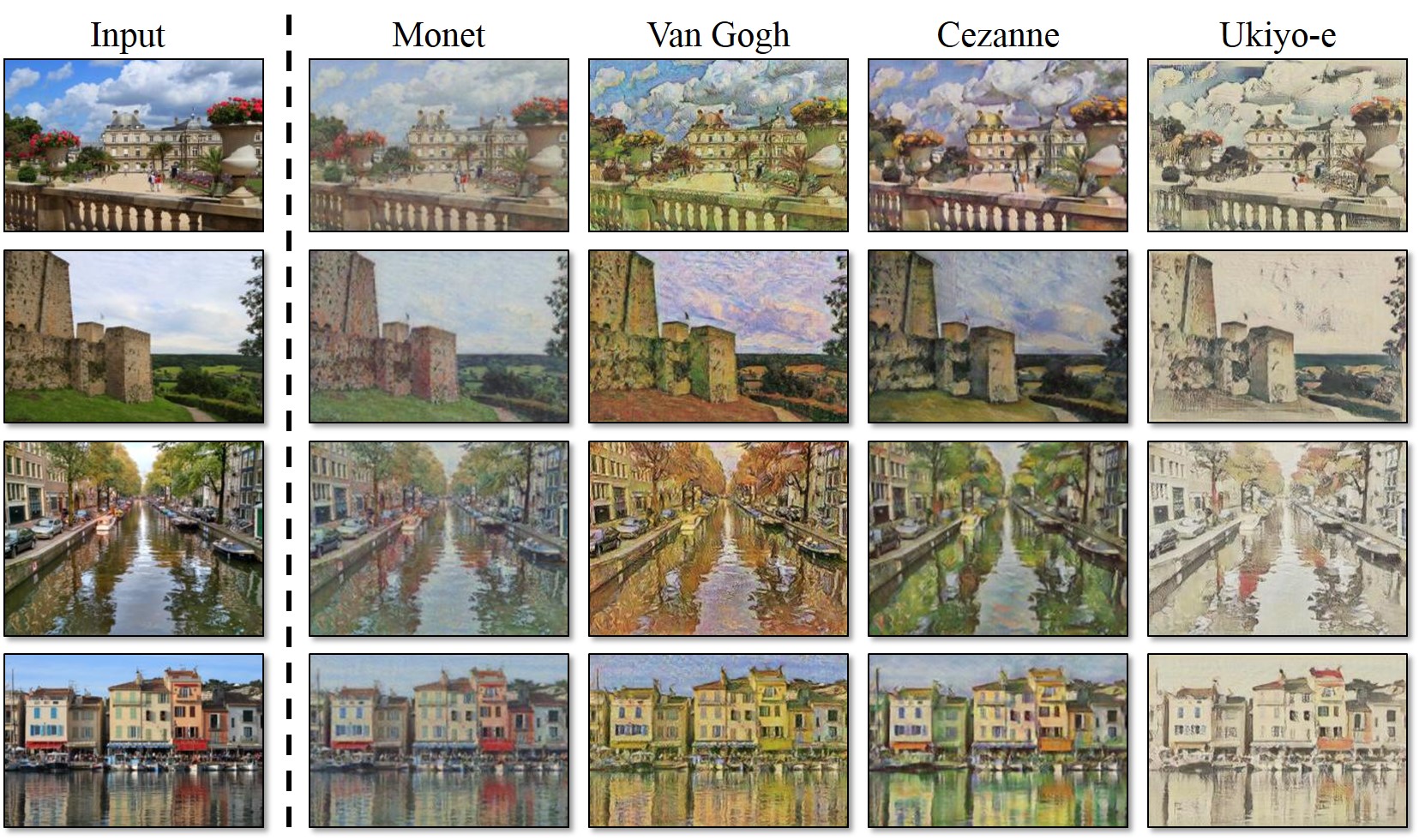 CycleGAN是在今年三月底放在arxiv(地址:https://arxiv.org/abs/1703.10593 )的一篇文章,文章名为Learning to Discover Cross-Domain Relations with Generative Adversarial Networks,同一时期还有两篇非常类似的DualGAN (地址:https://arxiv.org/abs/1704.02510)和DiscoGAN (地址:https://arxiv.org/abs/1703.05192),简单来说,它们的功能就是:自动将某一类图片转换成另外一类图片。
