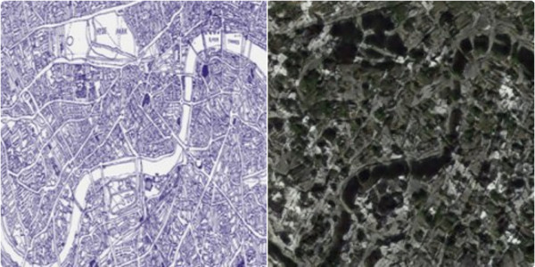 国外网友Jack Clark 还搜集了巴比伦、耶路撒冷以及伦敦的古代地图,利用CycleGAN将它们还原成了真实卫星图像: