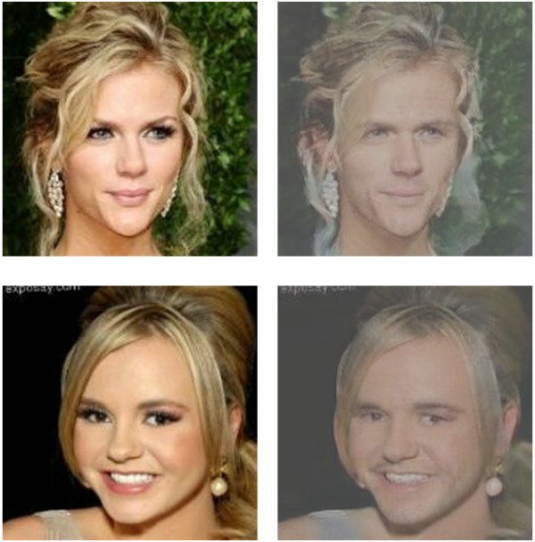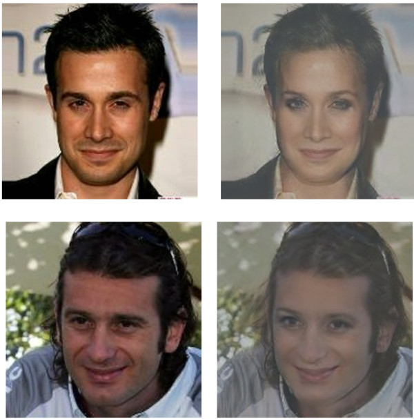利用这个代码,我训练了一个从男性和女性图片互换的模型,比如将男人转换成女人(左侧为原图,右侧为模型自动生成的图片):