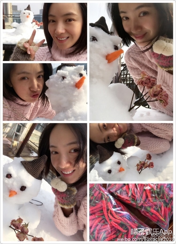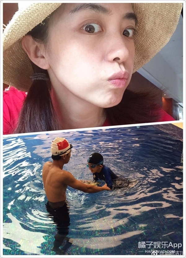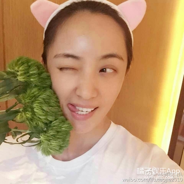 自拍的时候,刘晓洁几乎都是素颜啊↓