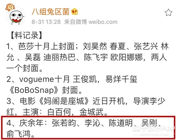 随后还有一些消息,出了一些具体阵容——张若昀、李沁、陈道明、吴刚、俞飞鸿。