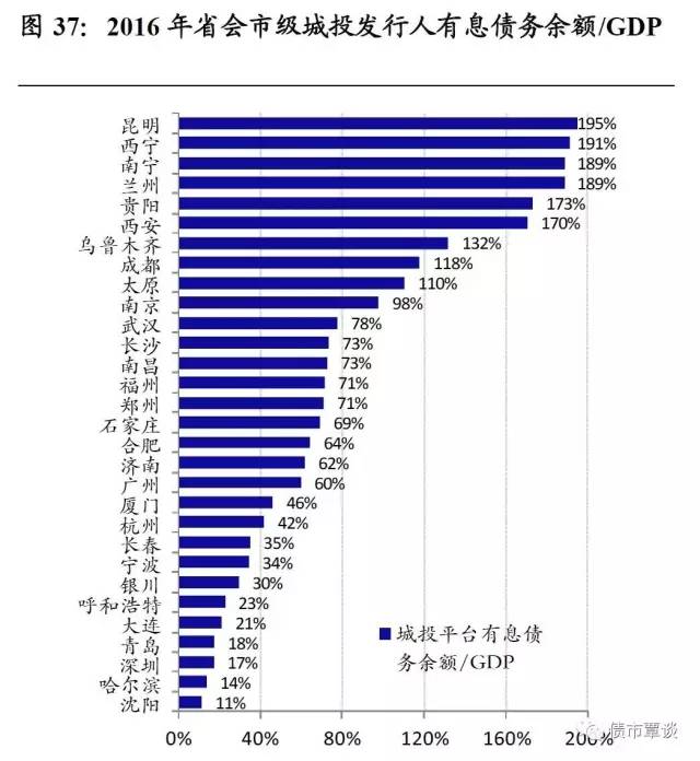 我们以各省会和计划单列市的“城投发行人有息负债余额/GDP”、“城投发行人有息负债余额/一般预算收入”指标,衡量各城市债务率,其中城投发行人根据wind 名单确定,主要结论如下: