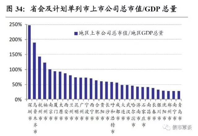 1)以“A股上市公司总市值/GDP”排名看,深圳、乌鲁木齐、杭州、福州和南京排名居前,分别占到247%、190%、143%、122%和100%,青岛、南宁、郑州和沈阳排名相对靠后,占GDP比均不到30%。