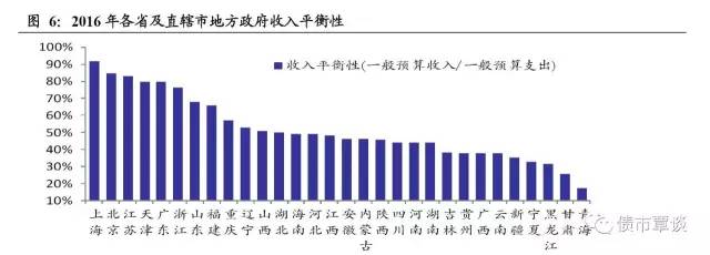 从广义政府财力看,地方政府可支配财力由一般预算收入、政府性基金收入、上级税收返还和转移支付,中央补助、上年结转结余、地方债务收入等构成,此外还包括了国有资本经营预算收入,我们以“一般预算总收入+政府性基金总收入+国有资本经营预算收入”指标衡量,2016年广义综合财力最高的省市为江苏、浙江、广东、山东和四川,分别为19657亿、15255亿、14463亿、13503亿和13375亿,均在1.3万亿以上,而甘肃、宁夏、黑龙江、青海等省市广义政府财力最低,不足2000亿,甘肃省广义财力收入仅为江苏的不足10%。