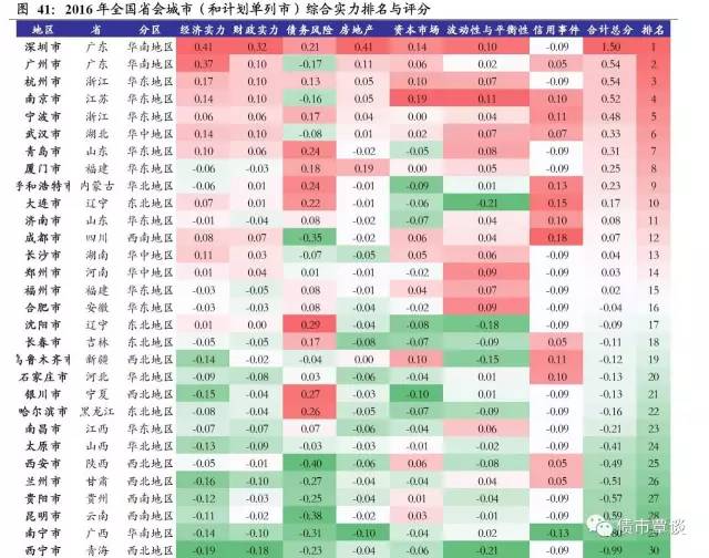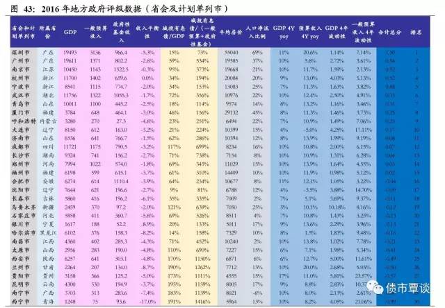 6)动态增长和波动性指标(15%):主要包括2012-16年GDP年化复合增速、2012-16年地方一般预算收入年化复合增速、GDP波动率、预算收入波动率;