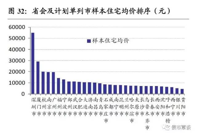 一个城市房价高低可以作为经济活跃度的晴雨表。2016年房地产价格(样本住宅均价)最高的省会及计划单列市依次为深圳、厦门、杭州、南京、广州。其中,深圳的房地产价格遥遥领先,达到55040元/平方米,是唯一一个房地产价格超过30000元/平方米的省会及计划单列市,其次,厦门房价接近30000元/平方米,杭州、南京、广州均房价均接近20000元/平方米,有13个省会城市均价在10000元以上,东三省、西部地区如沈阳、呼和浩特、西宁、银川和贵阳市房地产价格排名靠后,低于7000元/平方米。