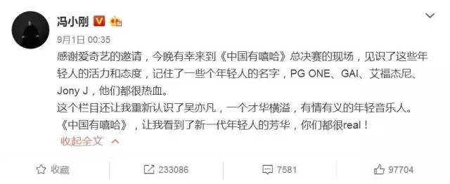 首先竟然有那么多明星也来了现场看比赛,比如冯小刚导演竟然也不小心被嘻哈圈了饭;