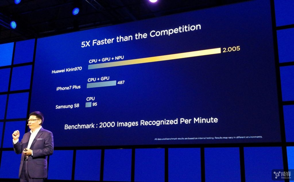 按照华为的说法,AI 芯片能够以人类的思考方式来理解人类诉求,具备高处理速度,高密度和高能效比,而麒麟 970 只是个开始,并超越竞争对手。余承东表示,麒麟 970 更快,更强,更聪明,更出色带来了人工智能时代下的崭新体验,展望智能手机的未来,我们正处于一个激动人心的新时代开端,“移动AI=设备AI+云AI”,未来智能终端将能够看懂、听懂,更了解你,能够思考更懂你,能够对话以更好的服务你。
