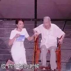 第一次,是董卿在像孩子们介绍老人小时候英语水平时,她跪在老人身边,带着崇拜又尊敬的眼神向老人提问。