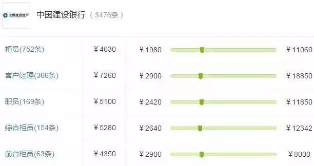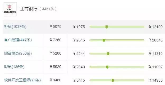 来看一看中国银行、农业银行、工商银行、建设银行、交通银行这五家国有商业银行的各岗位全国平均薪资: