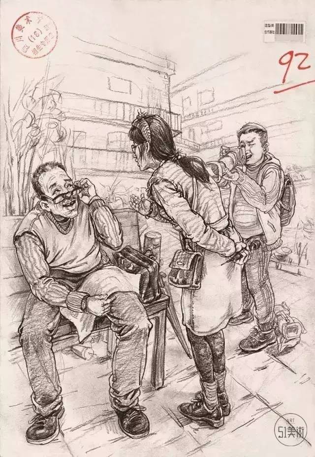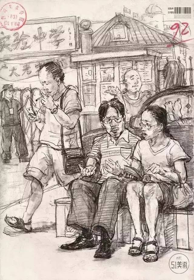 人物命题组合(速写)考题2:根据以下文字描述的情结作画:中考开考了,送考的家长在学校门口随便找个地儿,有的看书,有的聊天,有的来回走动,焦急的心情溢于言表。