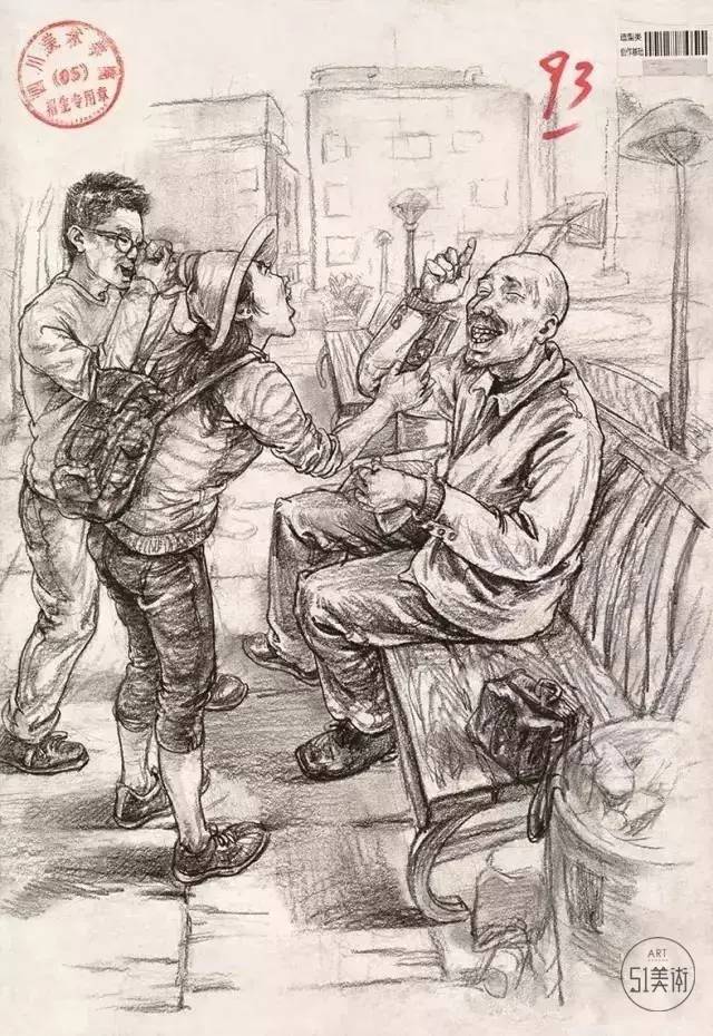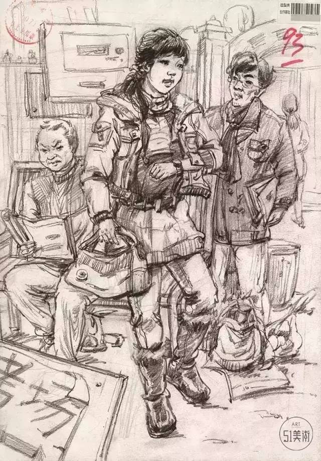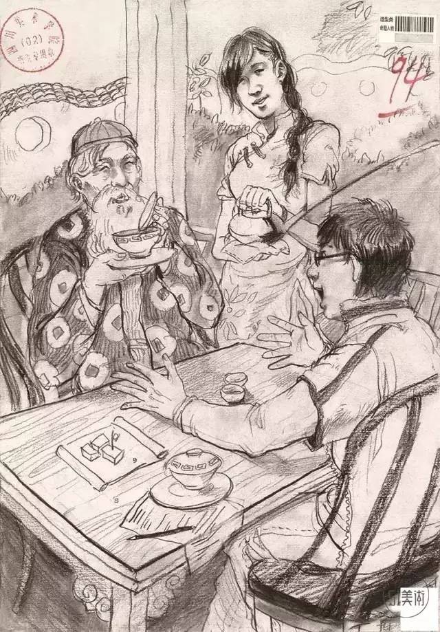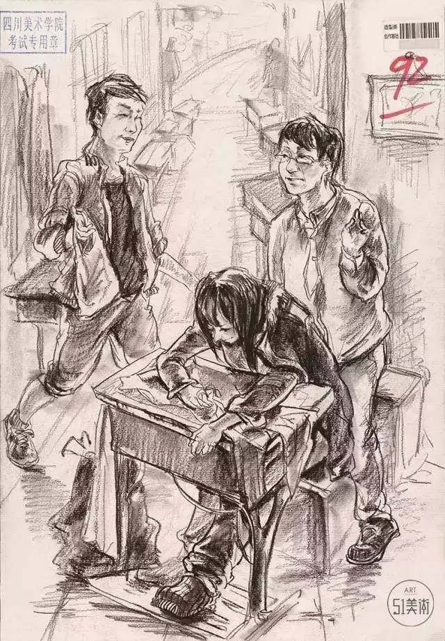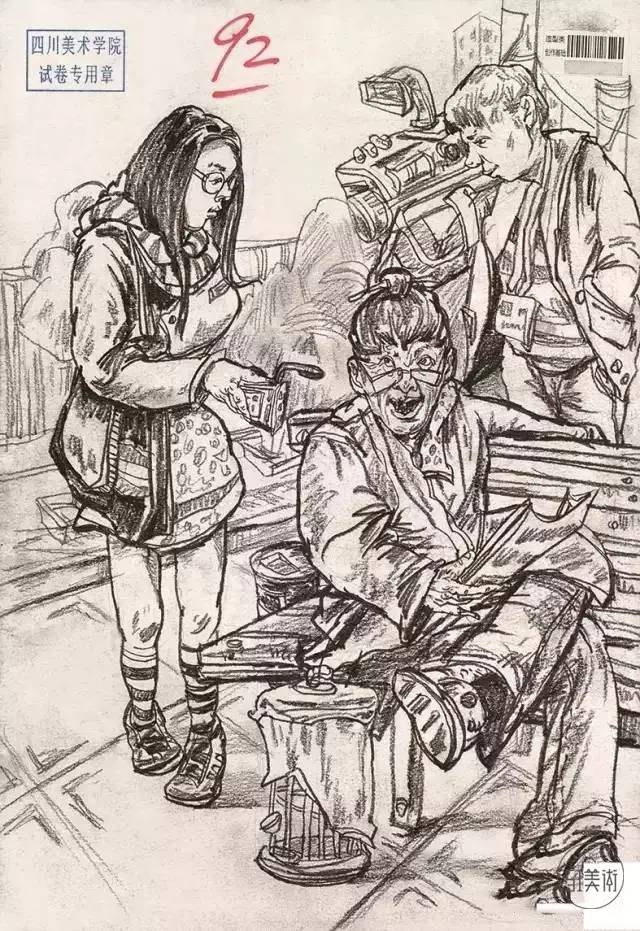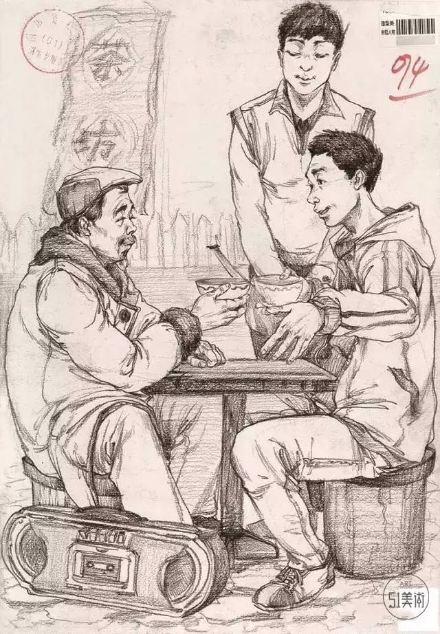 人物命题组合(速写)考试题目:以不少于3个人物形象、周边环境组成一幅具有一定情结的画面。