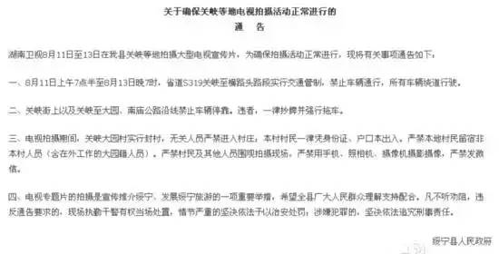 2015年,湖南省绥宁县政府发布的一则保证娱乐节目正常拍摄的通告,在当地引发争议。