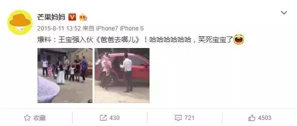 尽管通告未直接提到节目名称,但网友透露,这档节目正是《爸爸去哪儿》第3季。当年8月11日,实名认证为知名电视评论人的“芒果妈妈”在微博爆料王宝强入伙《爸爸去哪儿》第三季,并附上录制照,与上述通告中“电视拍摄活动”时间吻合。