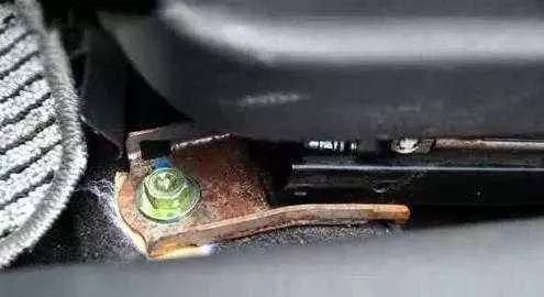 如果看车时不方便升起车辆,也有一个简单的方法检测,就是看车内的座椅检查的是座位下的滑轨,如滑轨内查看里面是否有泥沙。没有泡水的车辆滑轨内仅有灰尘,若大量出现泥沙,则可以基本断定该车曾经泡过水。另外,车内座椅的固定螺丝是没有做防锈处理的,如果出现明显的锈蚀情况,则更加能说明这辆车经过泡水。