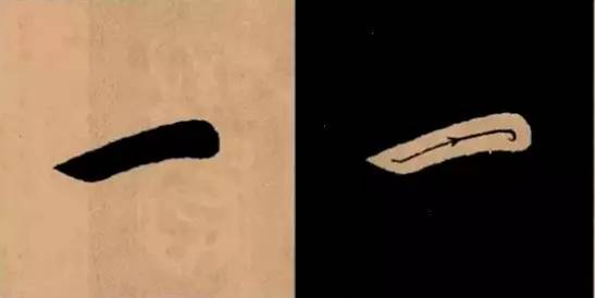 由粗到细的提 露锋往下斜顿,向右上急出锋。