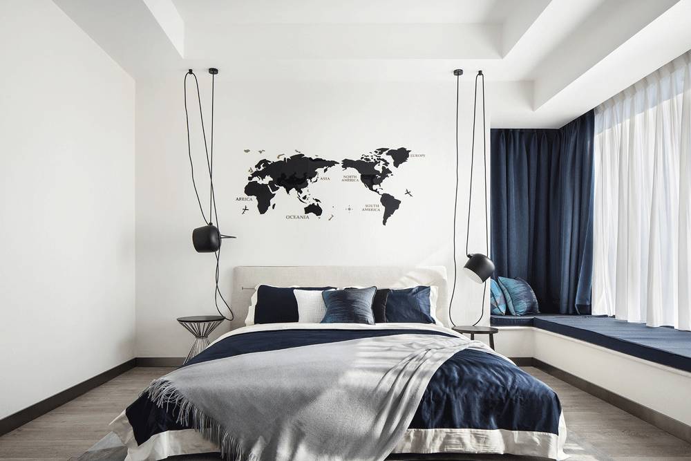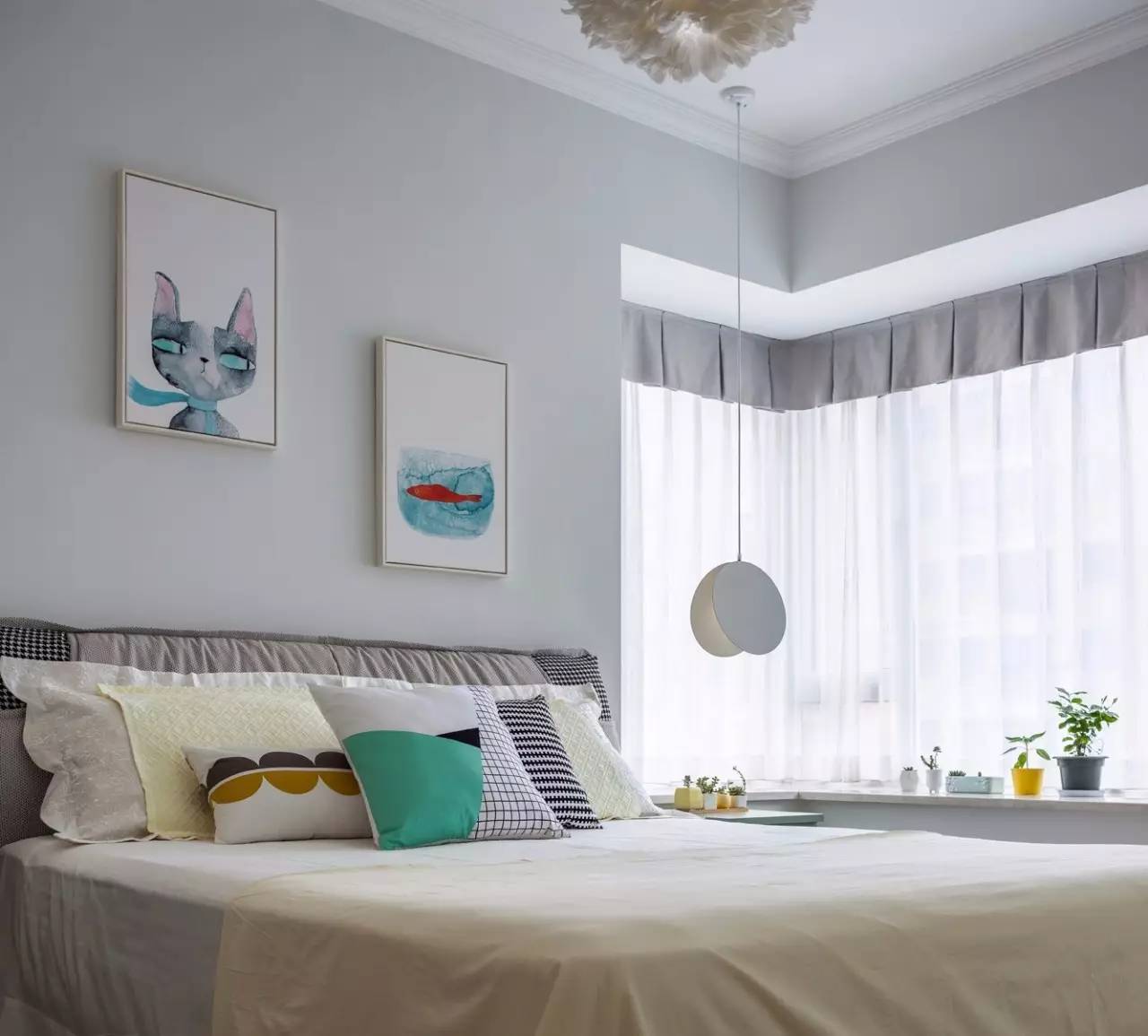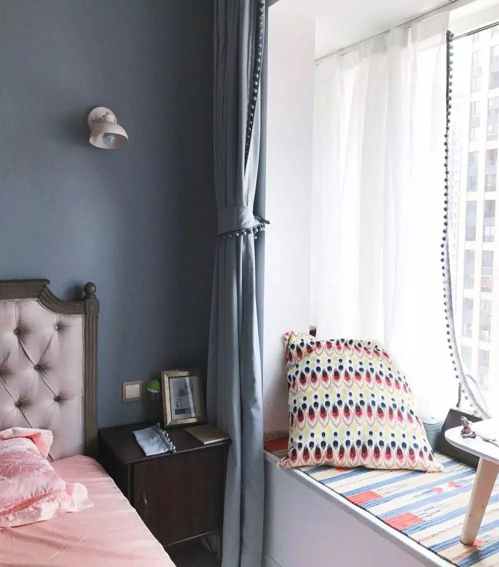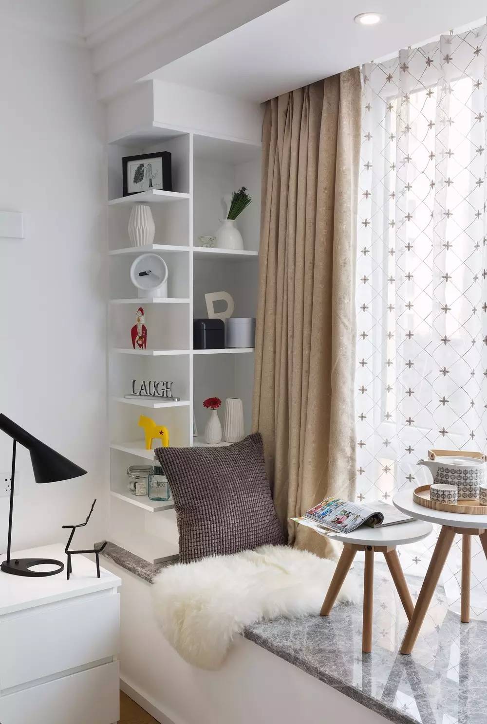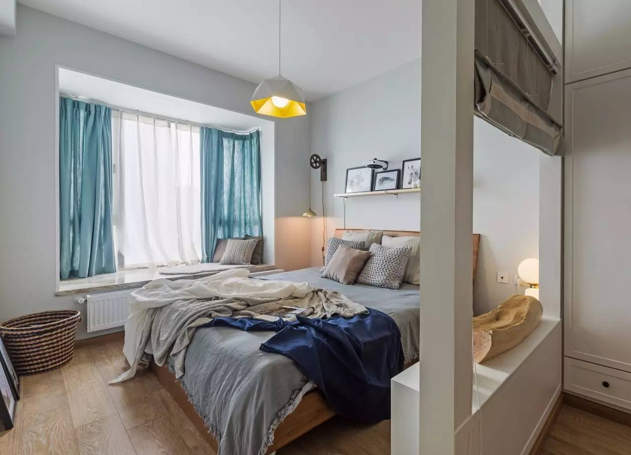对于飘窗比较大的户型,可以选择这种方式,窗帘装在飘窗中,不占用卧室的面积,因此可以让整个卧室看起来更加宽敞、大气,相反,如果是飘窗比较小的户型,设计姐倒不建议大家把窗帘全部安装在飘窗中,因为这样会显得卧室更加小,适得其反;