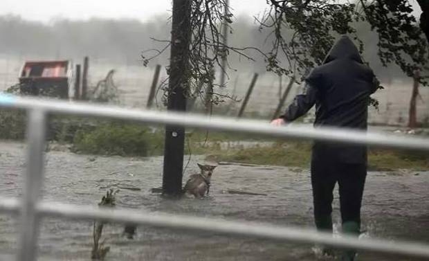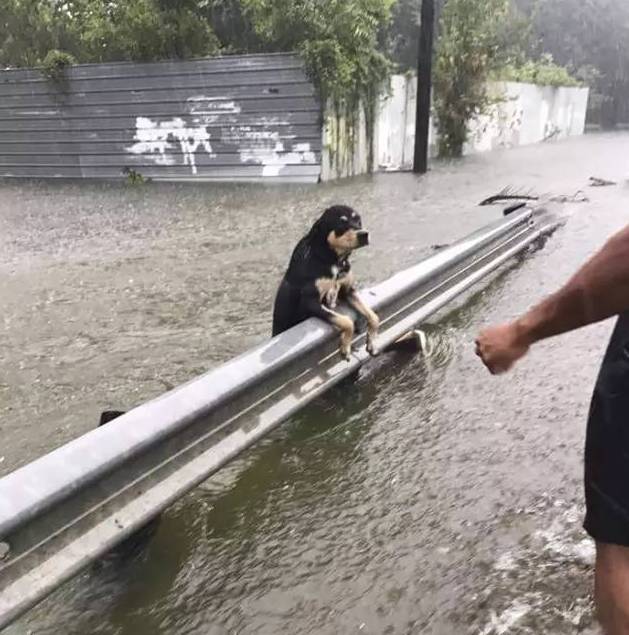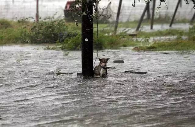 狗狗也非常听话,根本没想过要逃脱的样子,就静静坐在那里,等待主人回来,但等来的只有上涨的水势!